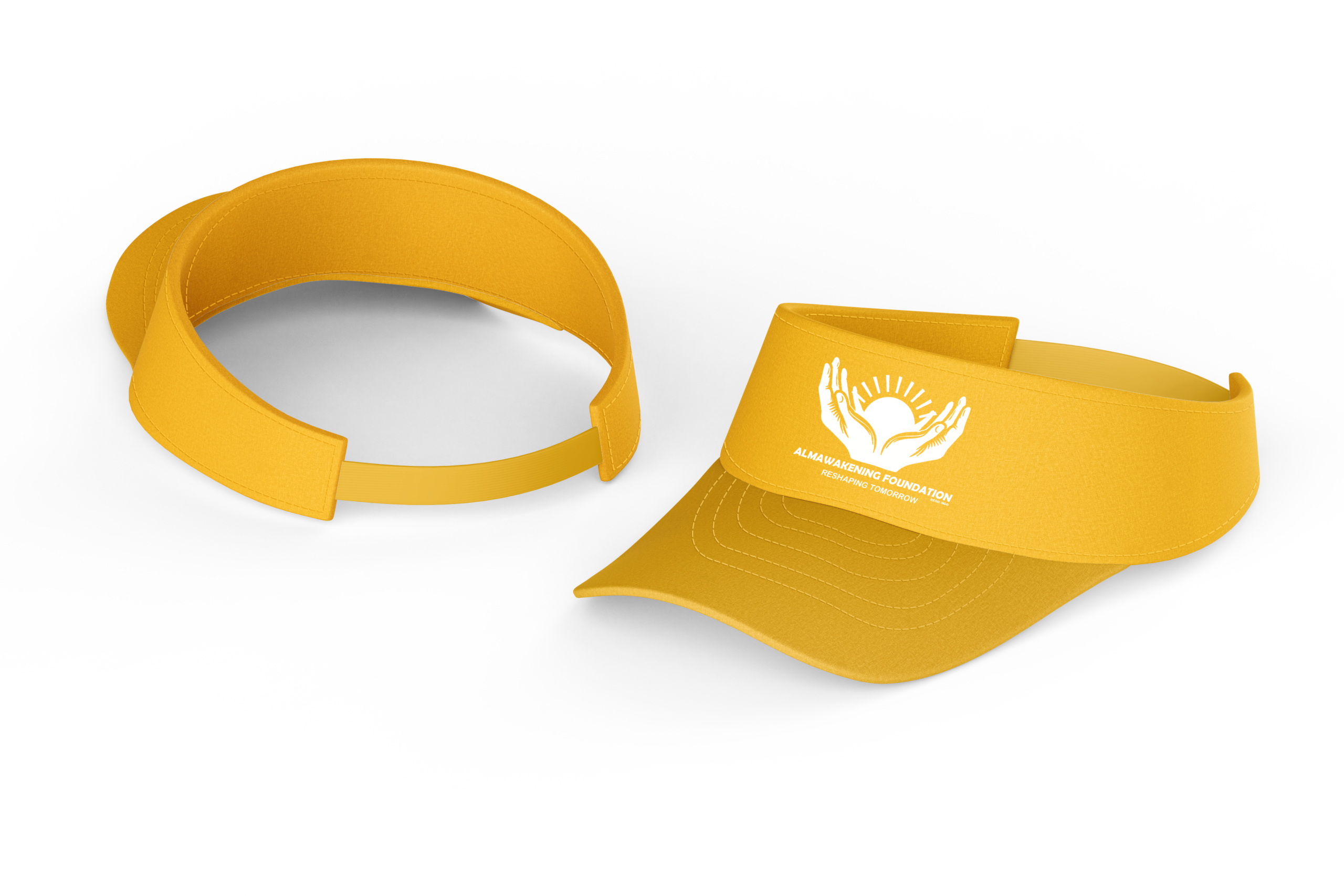 This bright yellow sun visor is a lightweight, functional, and stylish headwear option designed for outdoor activities and awareness events. Featuring the Almawakening Foundation logo with the tagline “Reshaping Tomorrow”, the visor offers sun protection while keeping the head cool and comfortable. Its open-top design makes it ideal for long hours of wear during campaigns, sports events, volunteering drives, and summer outreach programs.
